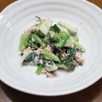 小松菜ときゅうりのツナたまごマヨサラダ。