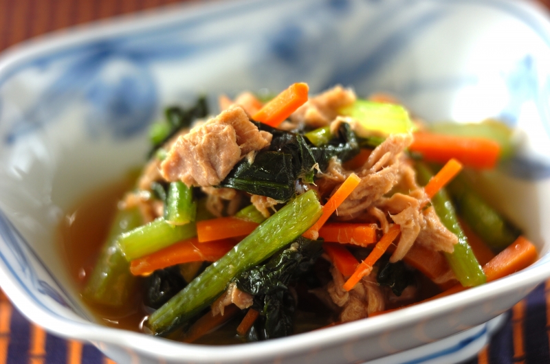 小松菜とツナのマヨネーズ和えかね七株式会社「味つくり100年」。