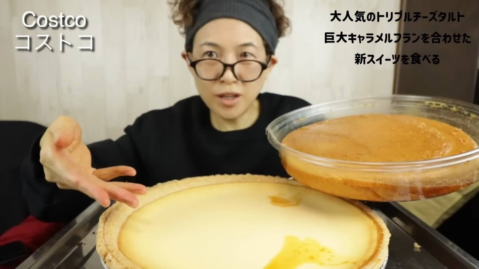 コストコ 超巨大スイーツ爆誕!キャラメルフランをトリプルチーズタルトにのせて実食4yuuu。
