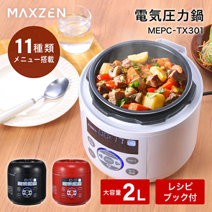 MAXZEN 期間限定ポイント10倍! 電気圧力鍋 圧力鍋 2L 炊飯器 3合 簡単 時短 保温 多機能 コンパクト シンプル 蒸し調理 ヨーグルトケーキ MEPC-TX301-BK : 総合通販PREMOA Yahoo!店 - 通販 - Yahoo!ショッピング。