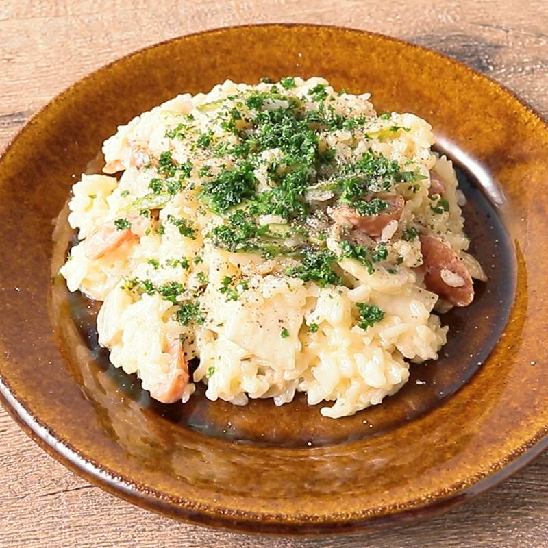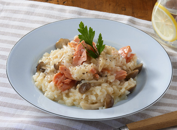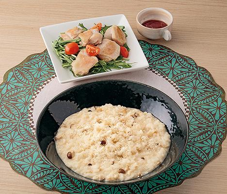 きのこの香りとチーズのコクが絶妙な きのこのチーズリゾット。