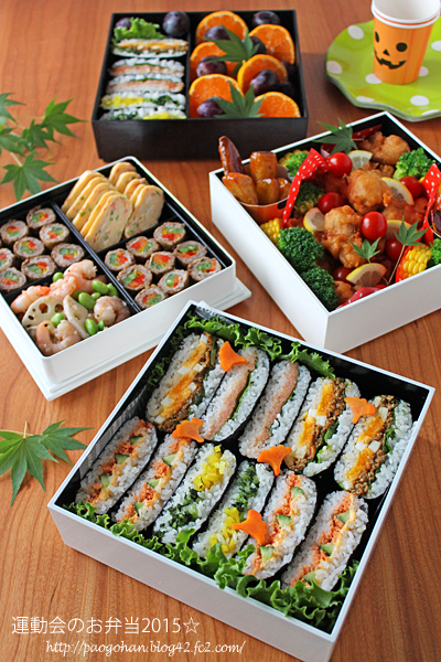 運動会のお弁当2015☆4種のおにぎらず&小学校の運動会ぱおのおうちで世界ごはん☆。