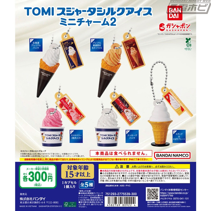 TOMIスジャータシルクアイス」のミニチャーム第2弾がガシャポンに登場!「北海道プレミアムバニラ」や、お店で見かけるソフトクリーム型スタンドなどがミニチュア化!電撃ホビーウェブ。
