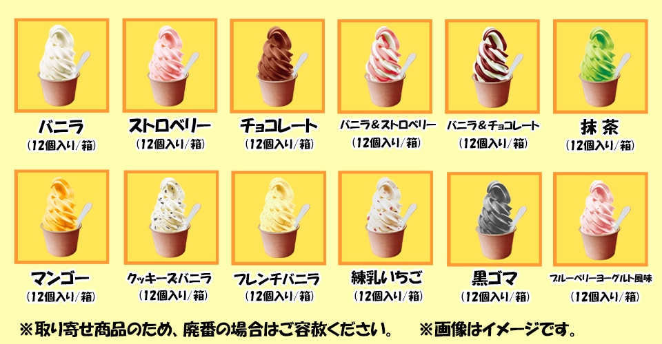 スジャータ ソフトクリーム用カップ いちご チョコ バニラ。