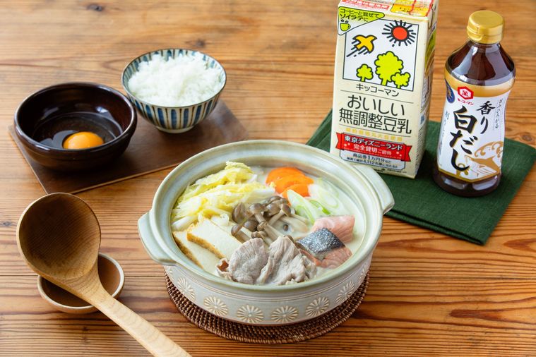 白だし豆乳鍋のレシピキッコーマン豆乳。