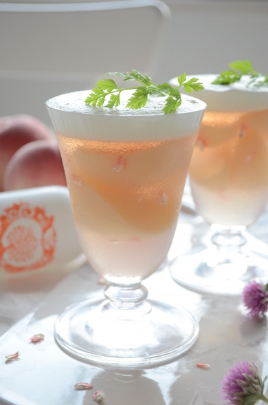 桃と三ツ矢サイダーで作る「桃コンポート」。