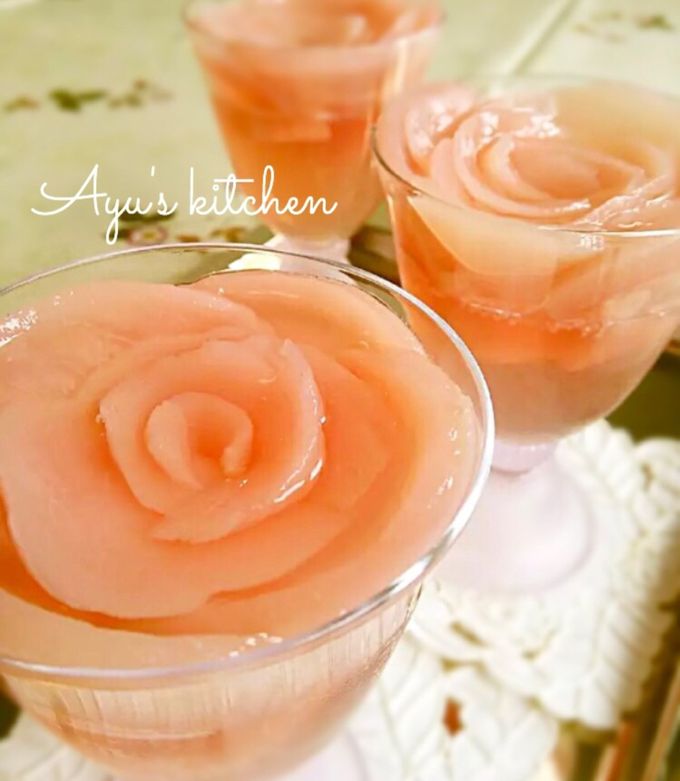 ぷるん♪桃のコンポートゼリーwithヨーグルト♡。