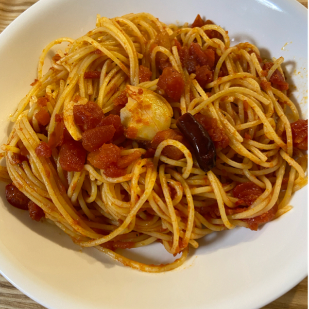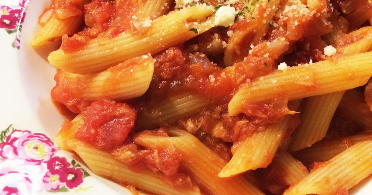 ペンネアラビアータ レシピトマト缶で作る・ピリ辛パスタ。