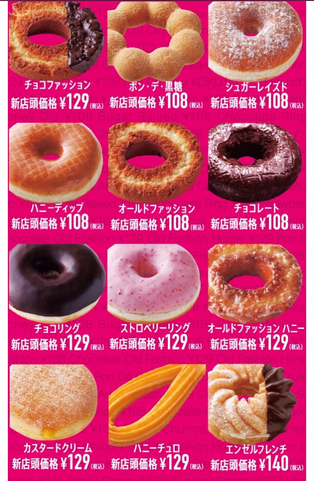 ぴすけす on X:"ミスドが値下げをして基本のドーナツ108円ですが食べたいドーナツは129円とまだ割高感を抱きます。「チョコリング」は仕方ないとしても「ハニーチュロ」は頑張って欲しかったかな?実際に商品を前にしてインパクトがありません。来店頻度的には変わらない。