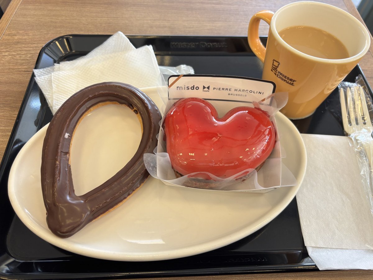 tang_ray on X: "ムシャクシャする事があったのでムシャムシャ食べた。ピエールなんたらの赤いハートと、チョコレートチュロ。私がよく行くミスドにはハニーチュロしかないのに、ここにはハニー、チョコ、ストロベリーチョコの3種類あるぞチュロス好きミスド。