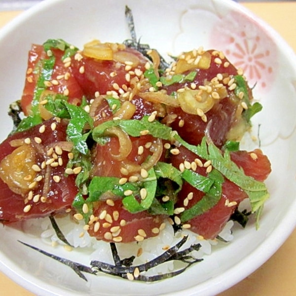 簡単☆鮪ぶつ切りの香味野菜漬け丼。