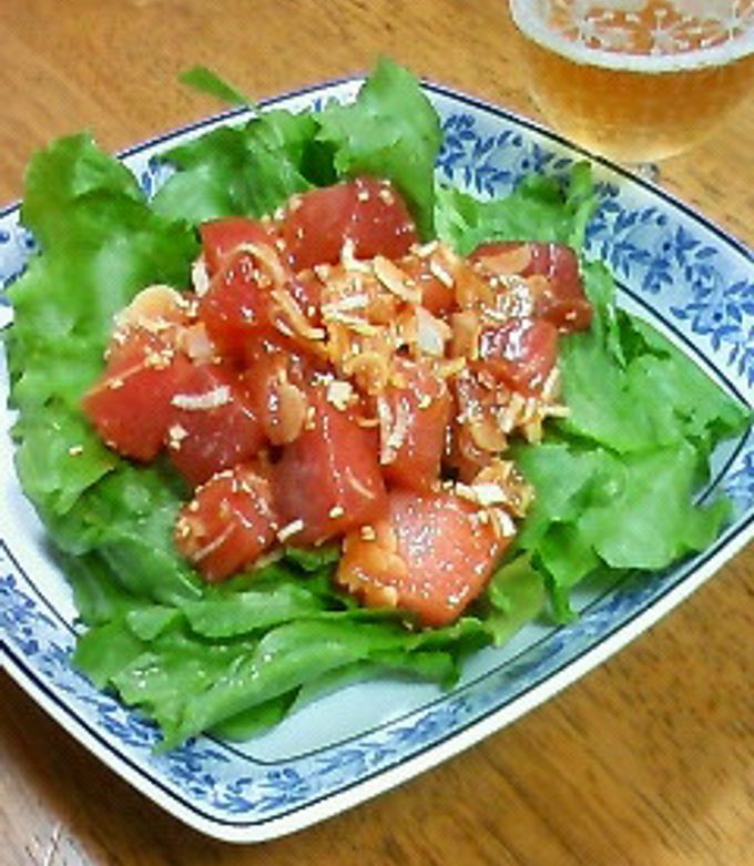 ゴマ油でアレンジ!濃厚まろやかで美味しい「マグロのポキ」おつまみレシピたのしいお酒.jp。