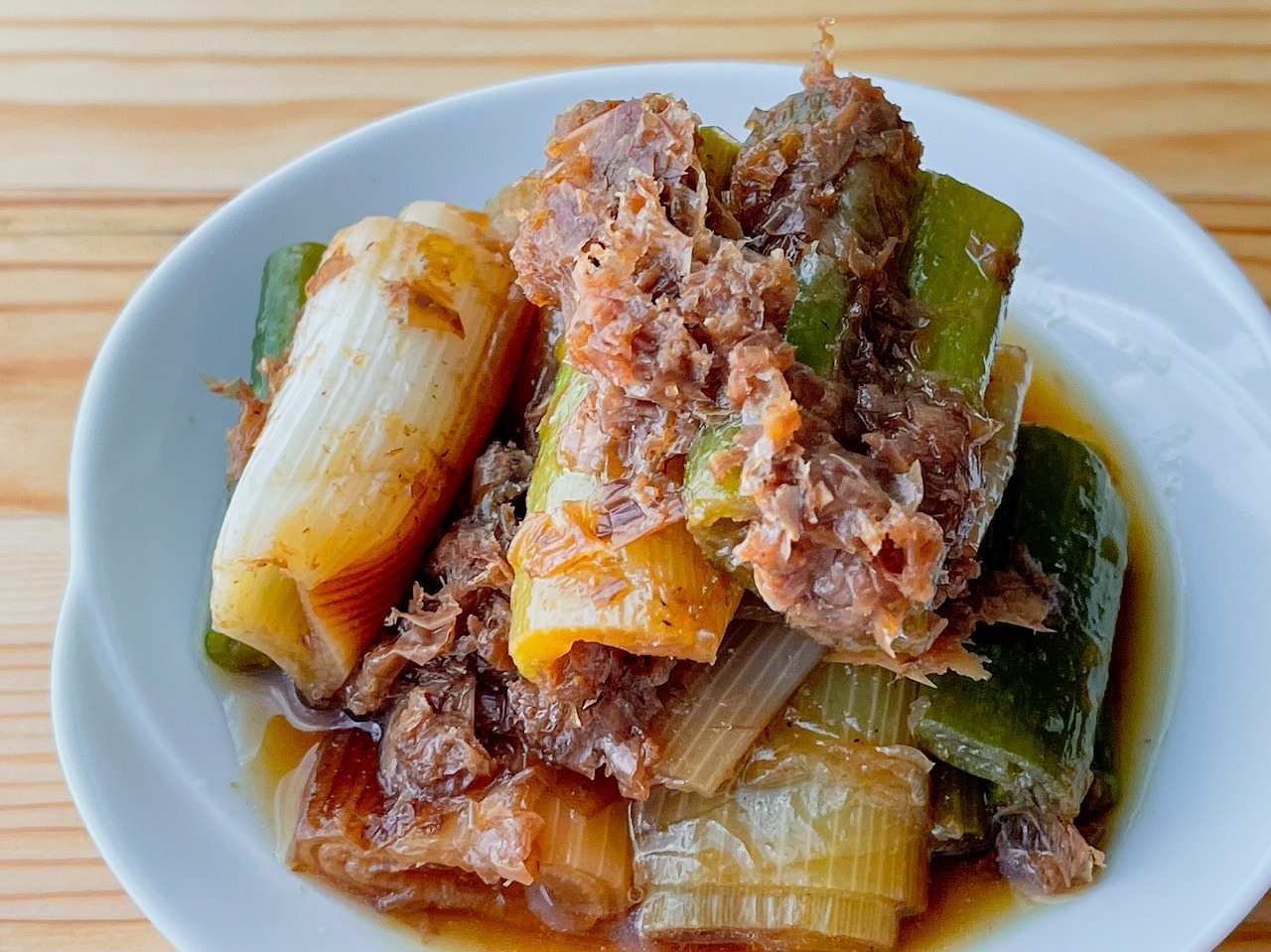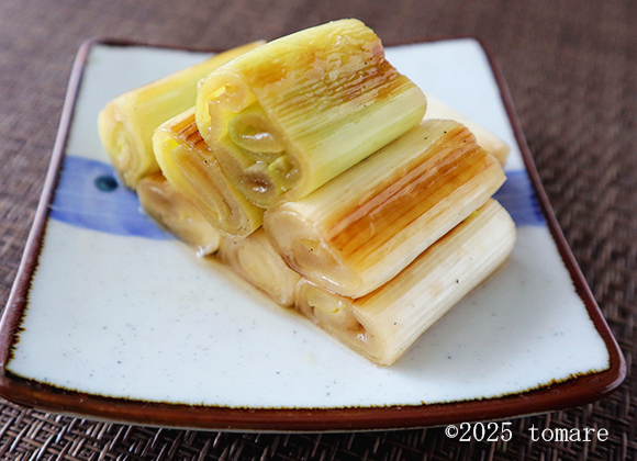 とろとろ染みじゅわ。長ねぎのしょうが醤油焼きびたし。