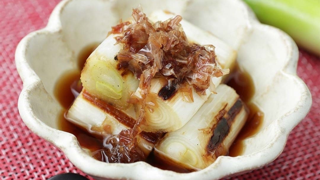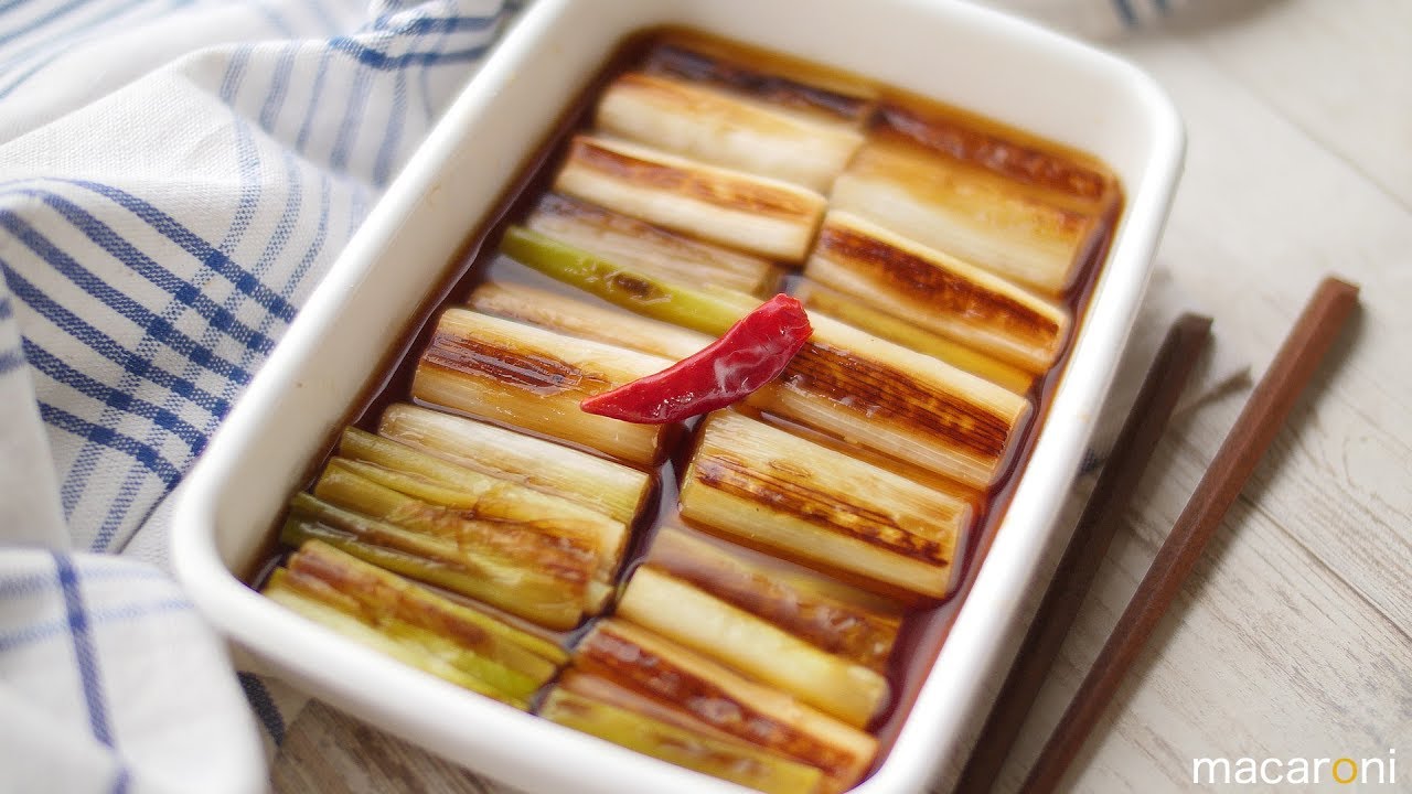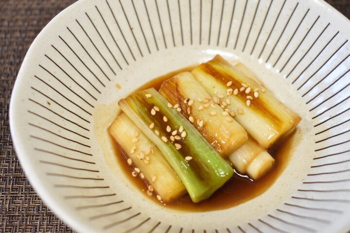 長ネギ」を香ばしく焼いて麺つゆ特製ダレに漬けるだけ。トロトロでやみつき「焼きネギのおひたし」。
