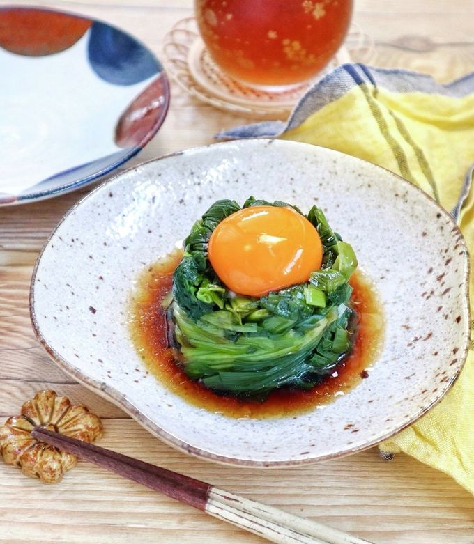 とろ〜りやみつき♡『小ねぎのおひたし卵黄乗せ』。