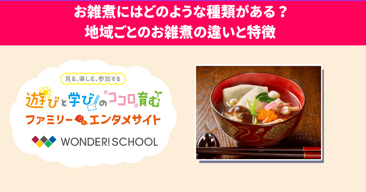 お雑煮にはどのような種類がある?地域ごとのお雑煮の違いと特徴バンダイによる、遊びと学びのココロ育むファミリーエンタメサイト。