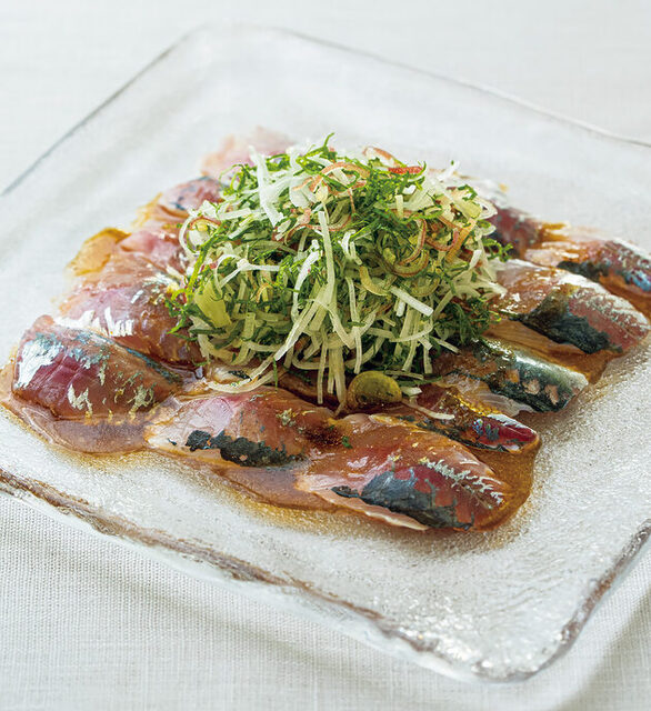 シマアジの炙りカルパッチョ 九条ネギのソース海の恵み 食の底力 JAPAN 公式レシピサイト。