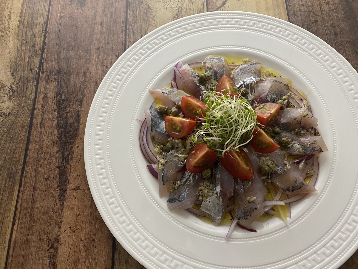 釣りたてアジのカルパッチョ。