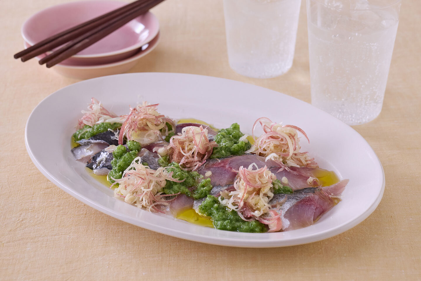 鯵とミョウガの和風カルパッチョ。