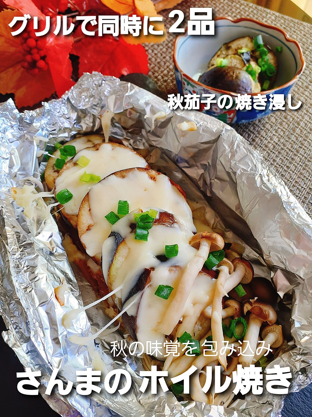 グリルで同時に2品!秋の味覚を包み込み ホイル焼き。