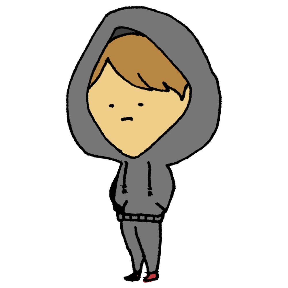 パーカーのフードをかぶる男性のフリーイラストフリーイラスト・クラシック フリクラ。