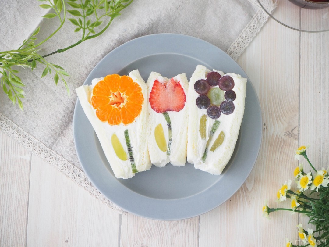 奇跡の断面♪ おうちで作る「お花フルーツサンドイッチ」のレシピ - macaroni。