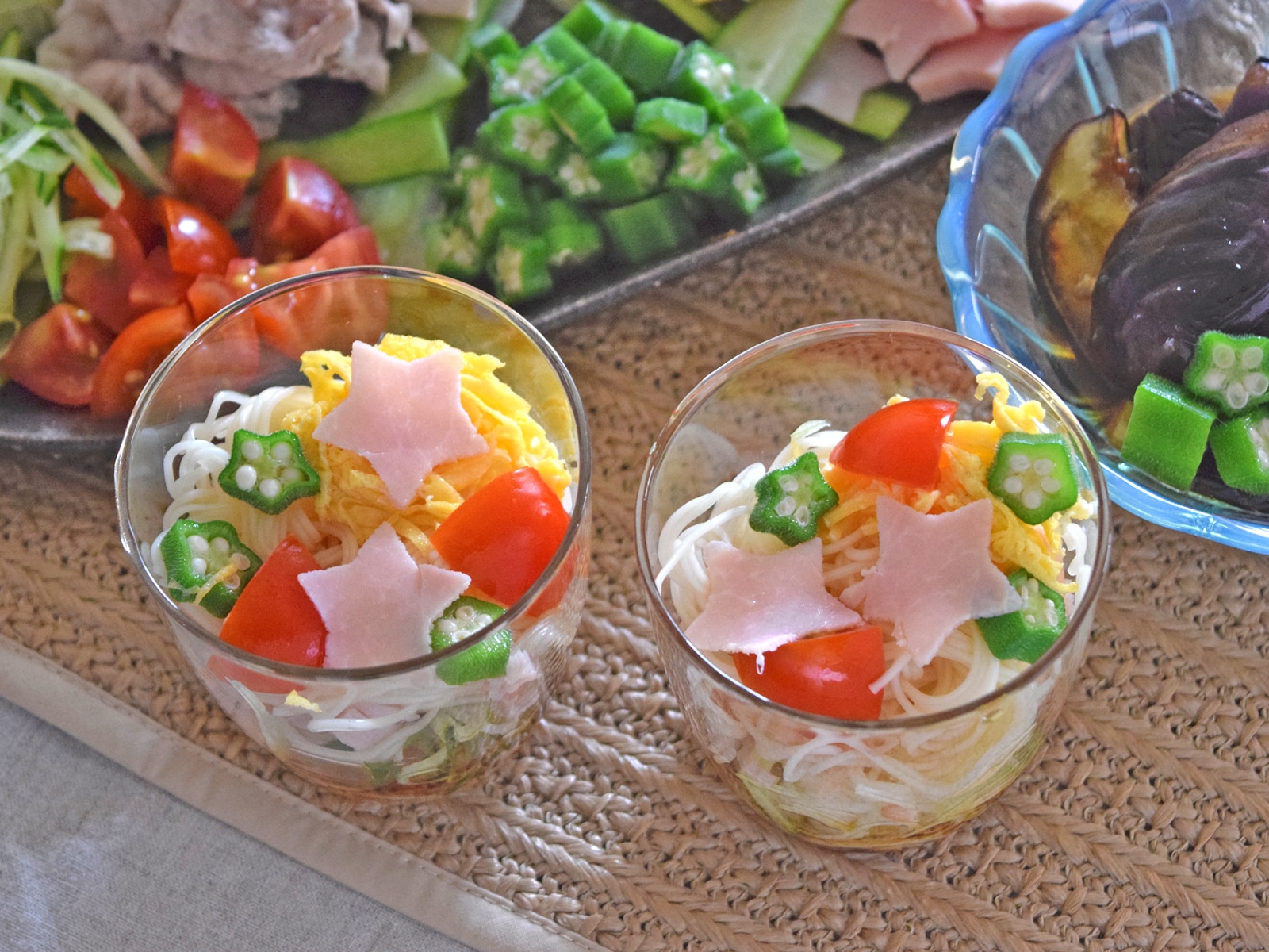 もうすぐ七夕♪ おもてなし素麺2種 素麵のきれいな盛り方お慶さんのおもてなし料理日記。