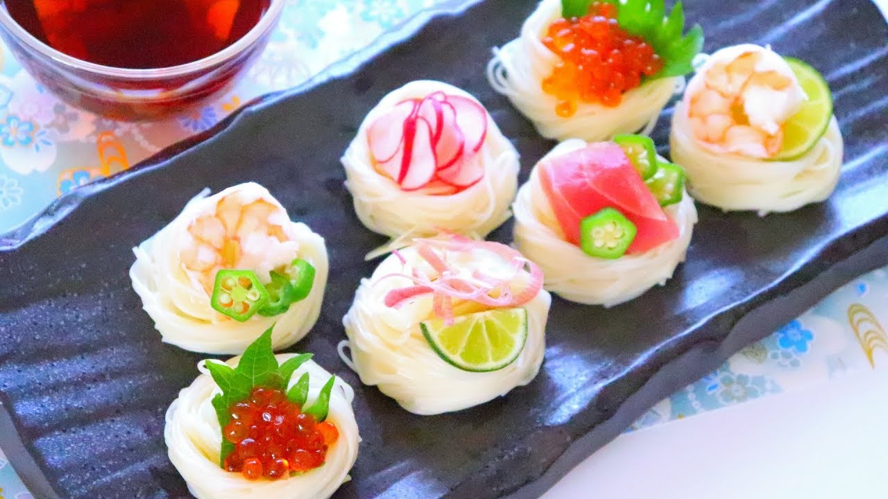 How to make Somen Noodles そうめんを一口サイズに美しく盛り付ける方法・巻き方 - 料理動画。