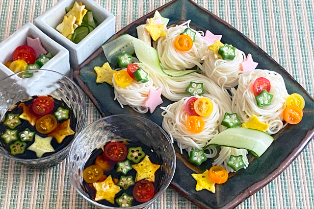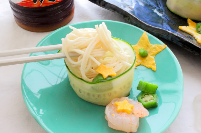 ポイントはきゅうりの輪っか!夏のおもてなし「七夕そうめん」。