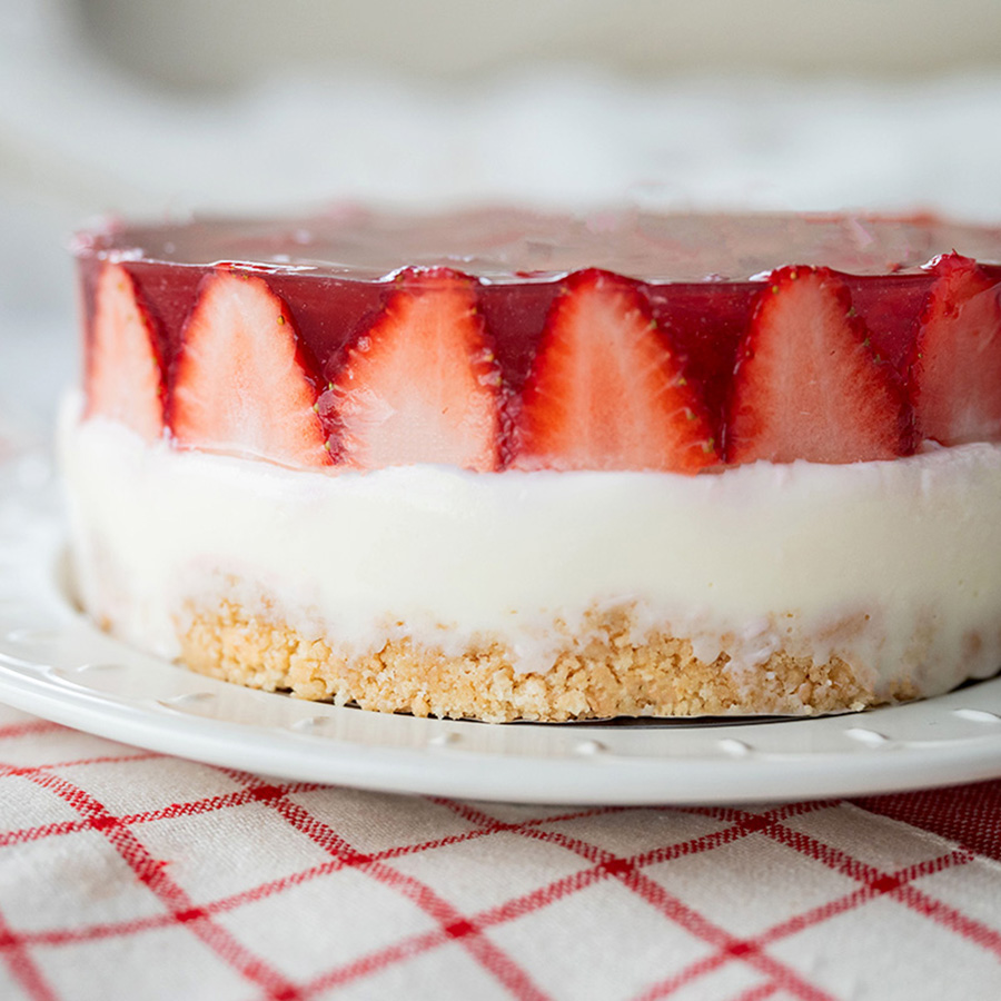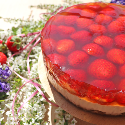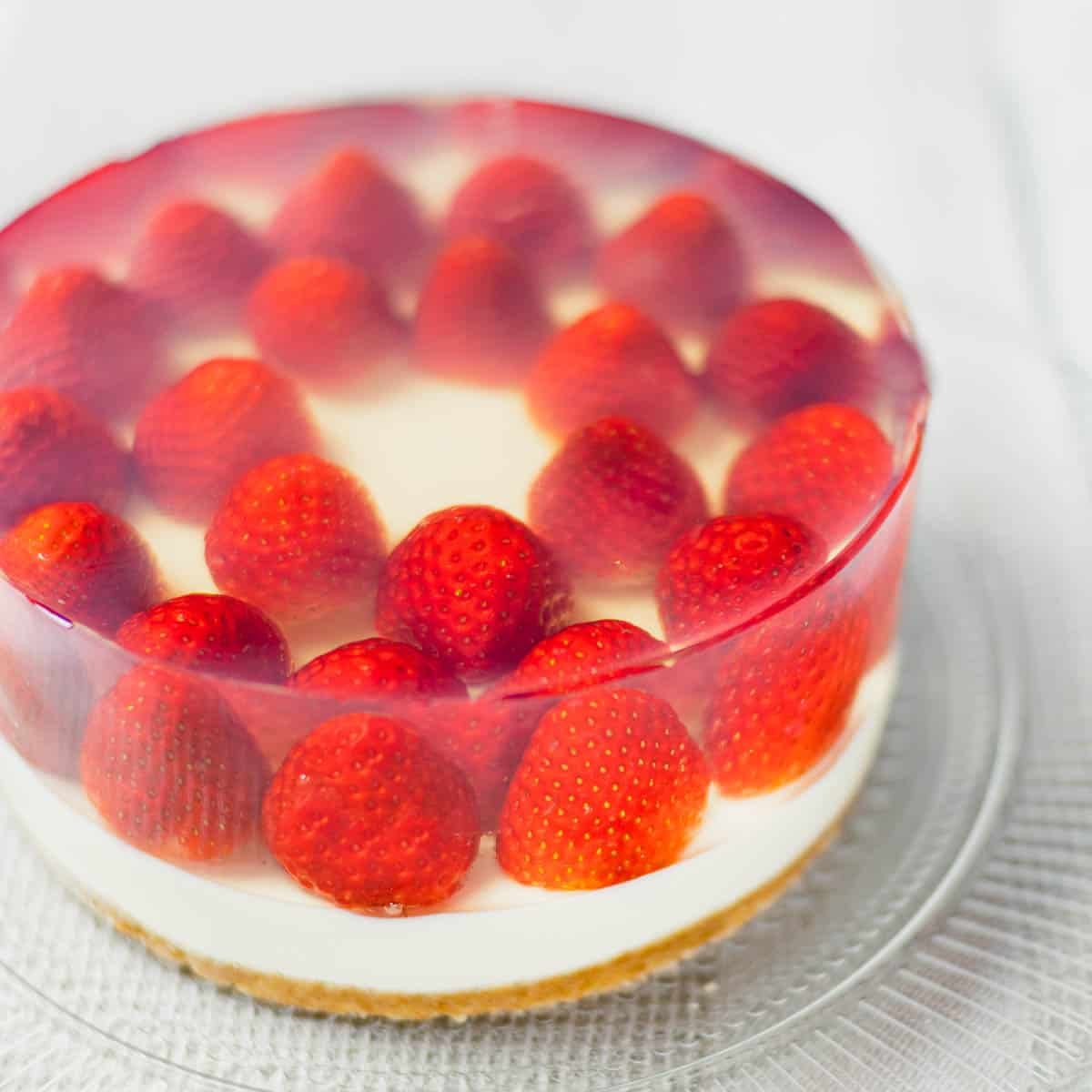 フレッシュ苺のレアチーズケーキ顆粒ゼラチンレシピ業務用製品。