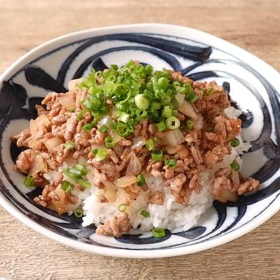 10分で作れる 豚ひき肉と玉ねぎの甘辛丼。