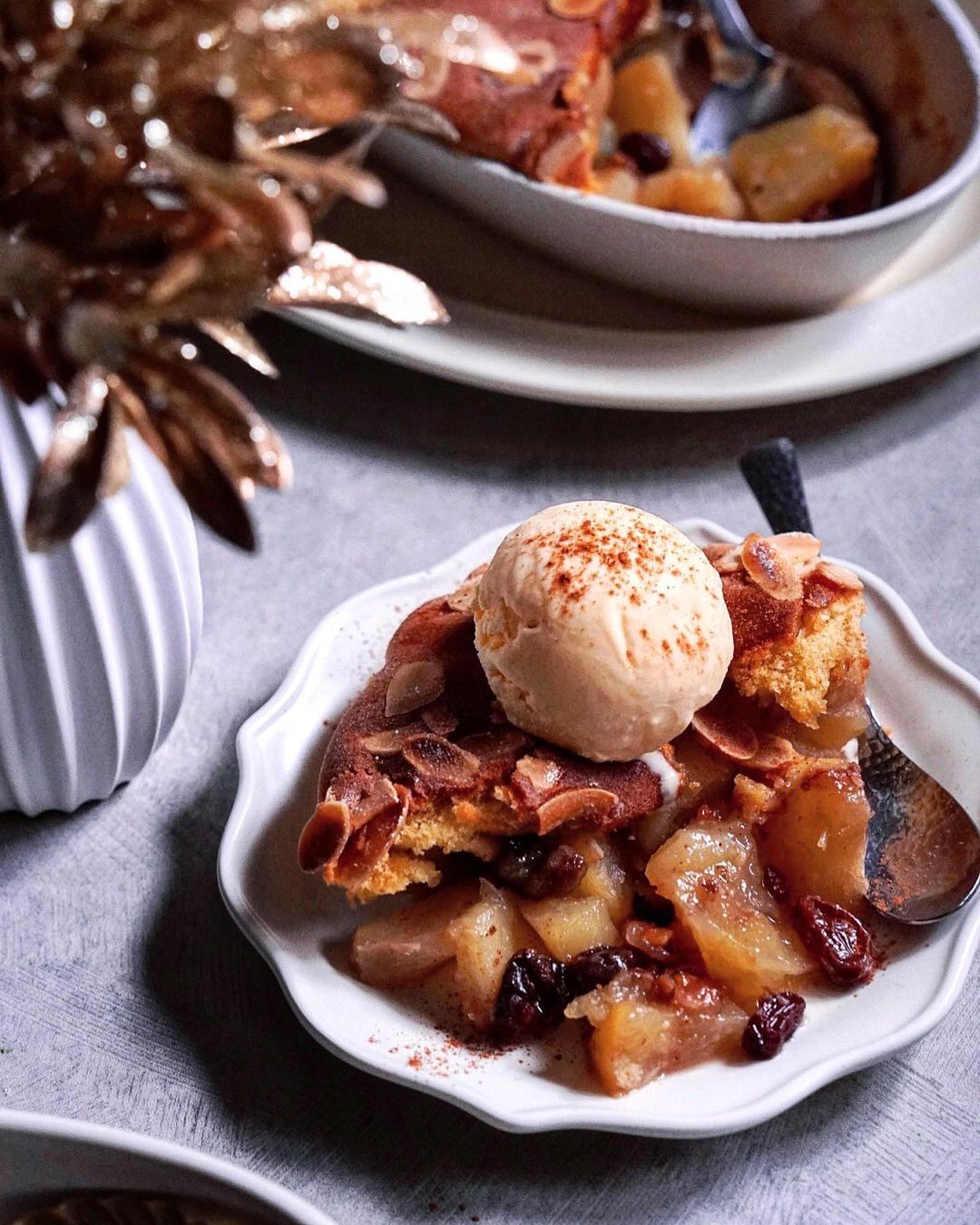 アメリカ秋の定番デザート りんごと梨のクリスプ。