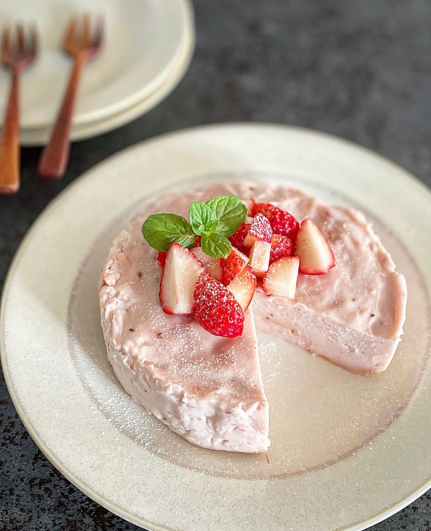 フルーチェで簡単!いちごのレアチーズケーキ🍓。