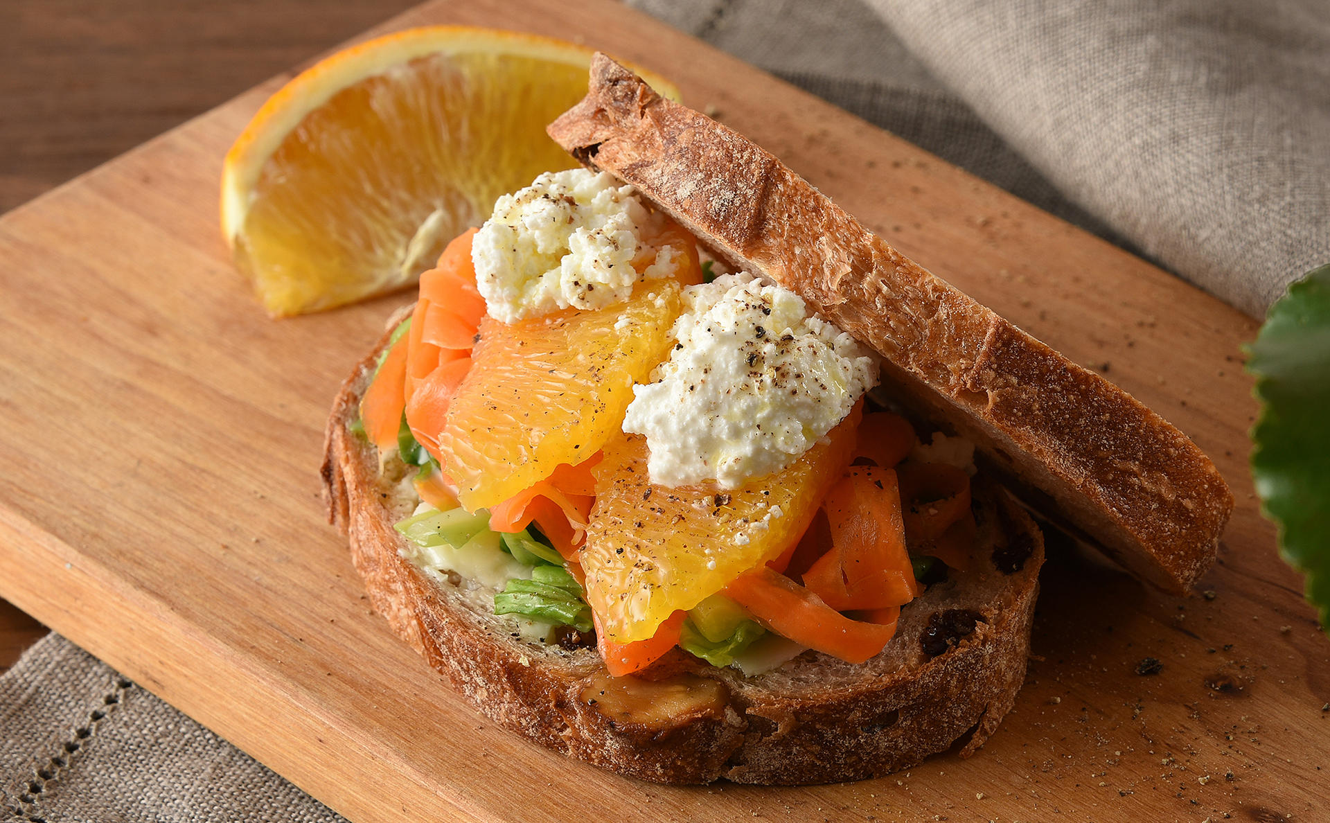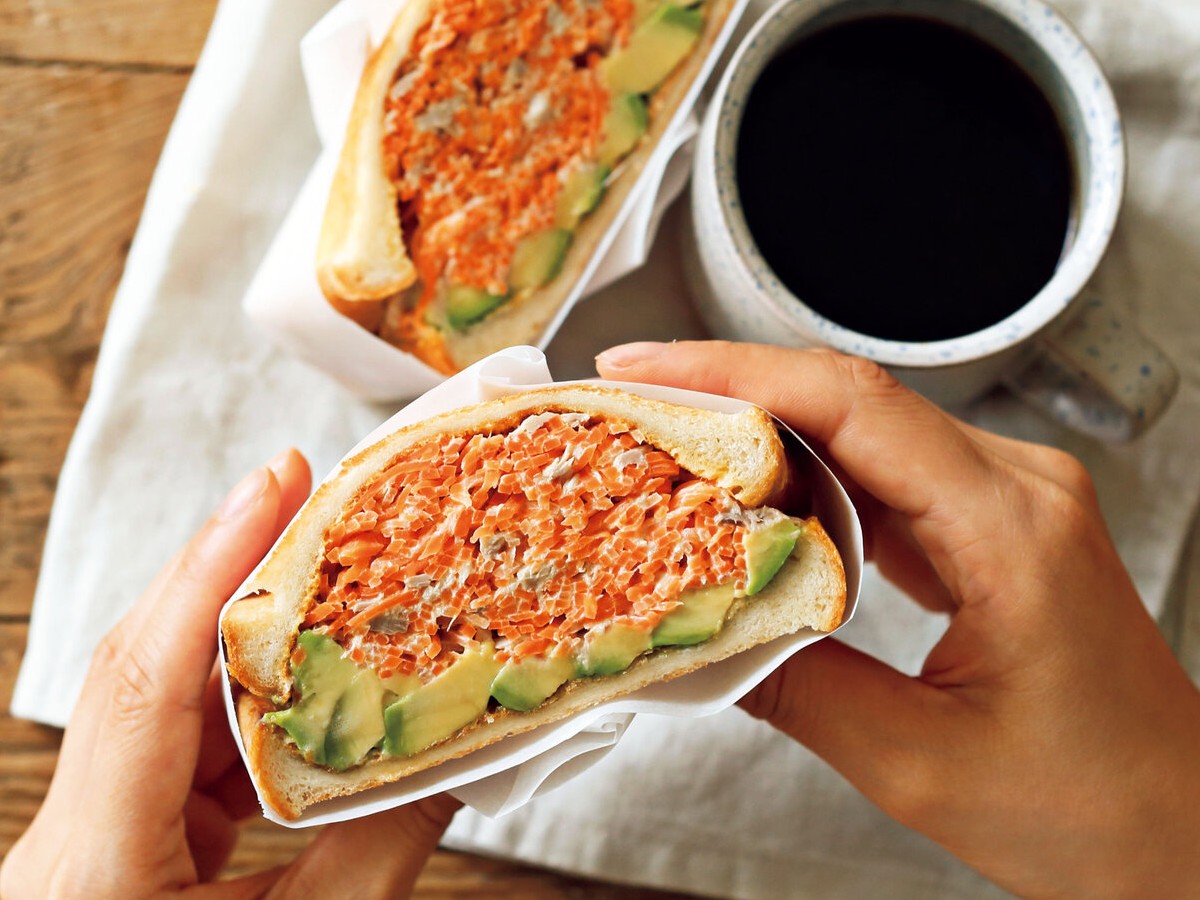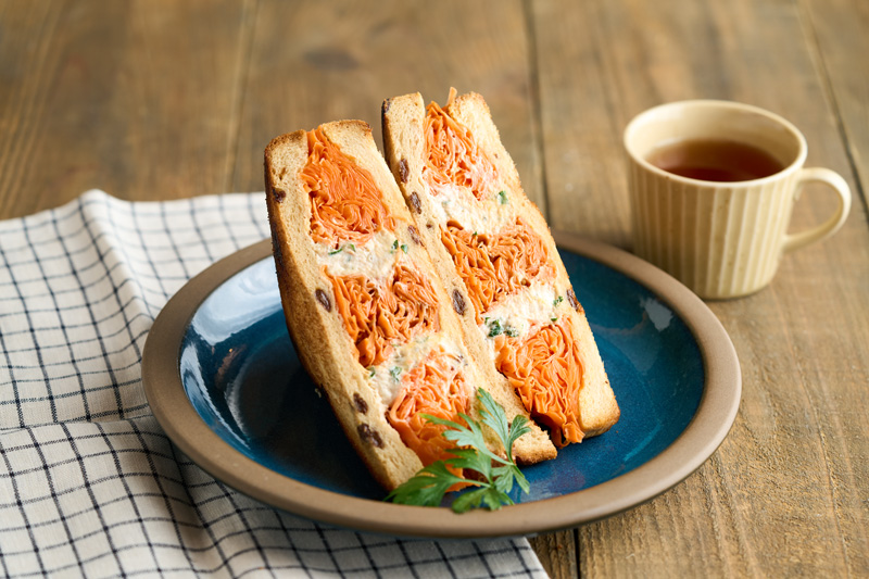 色鮮やかで食感も楽しい♪たっぷりにんじんのサンドイッチフーディストノート。