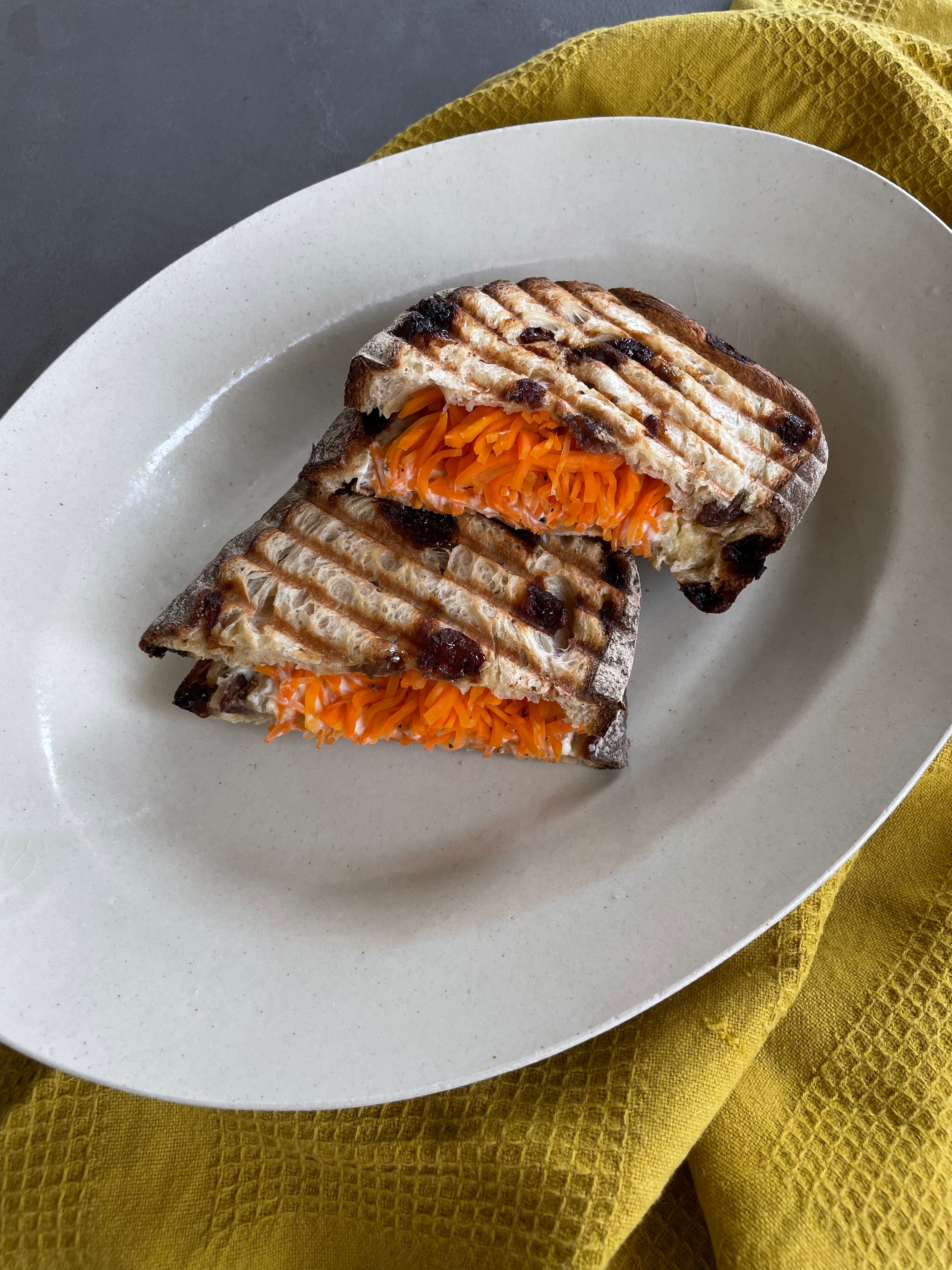 キャロットラペとクリームチーズのレーズンブレッドホットサンド ワッフル&ホットサンドベーカー– Vitantonio。