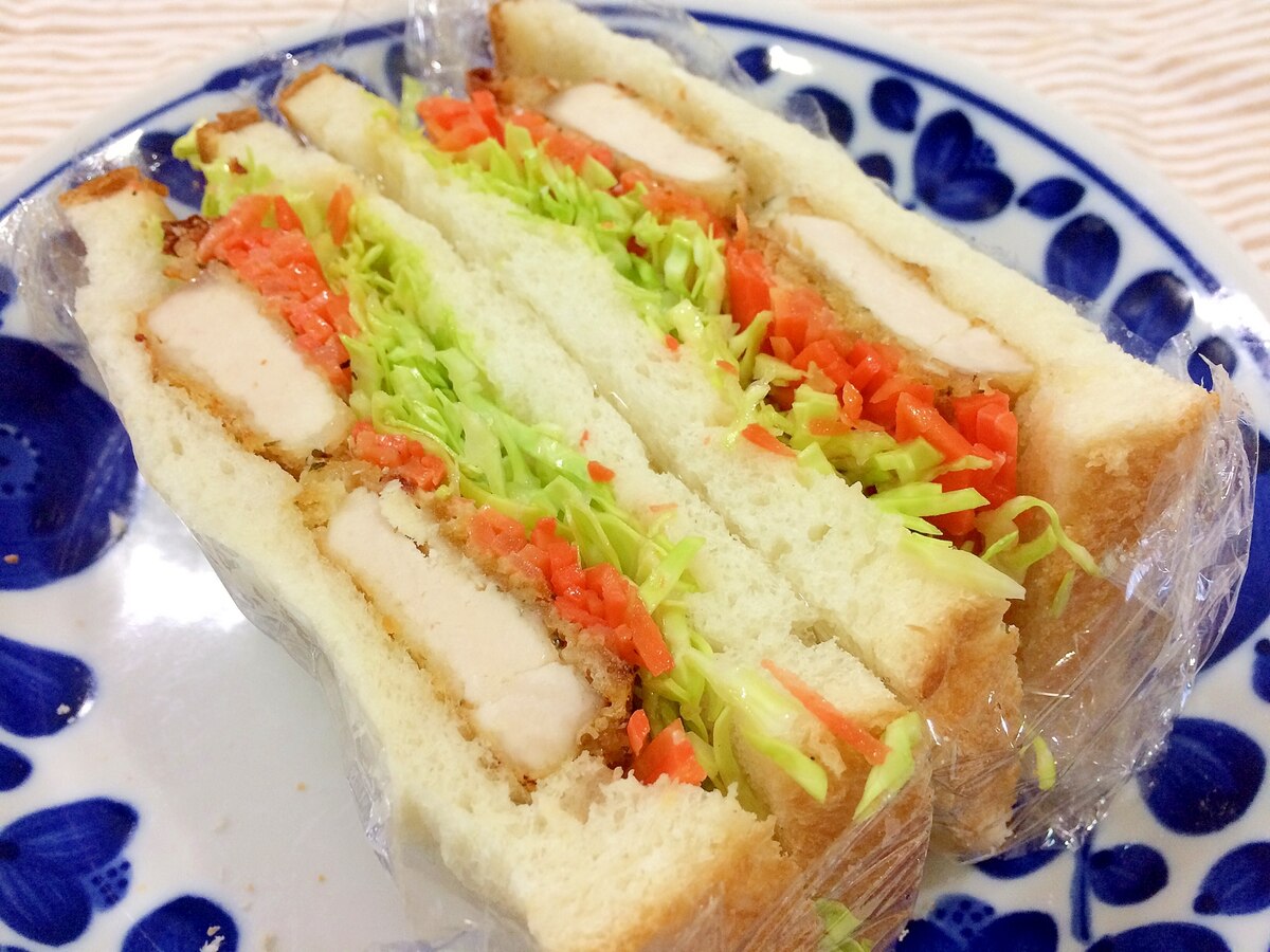 キャベツとキャロットラペ入り★チキンカツサンド。