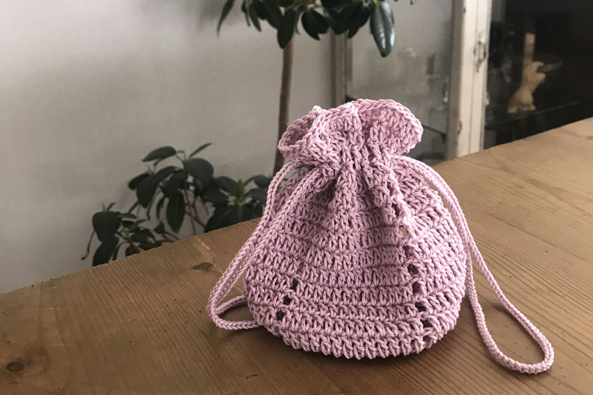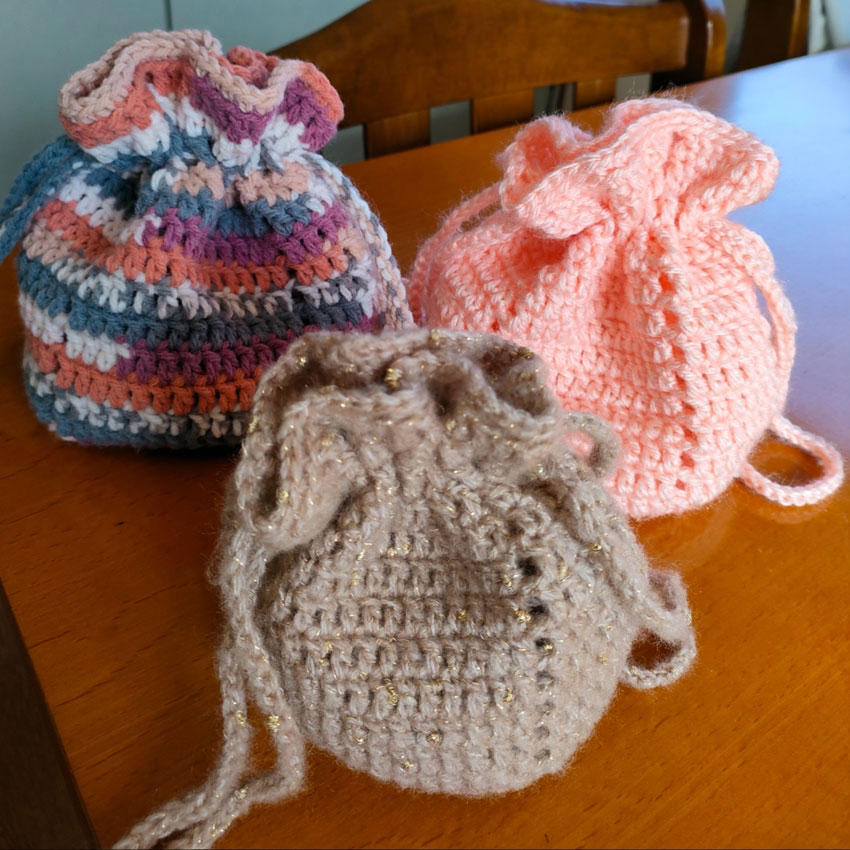 かぎ針編みのシンプルな巾着 初心者さん向けの簡単な編み方- ドゥジャンテ。