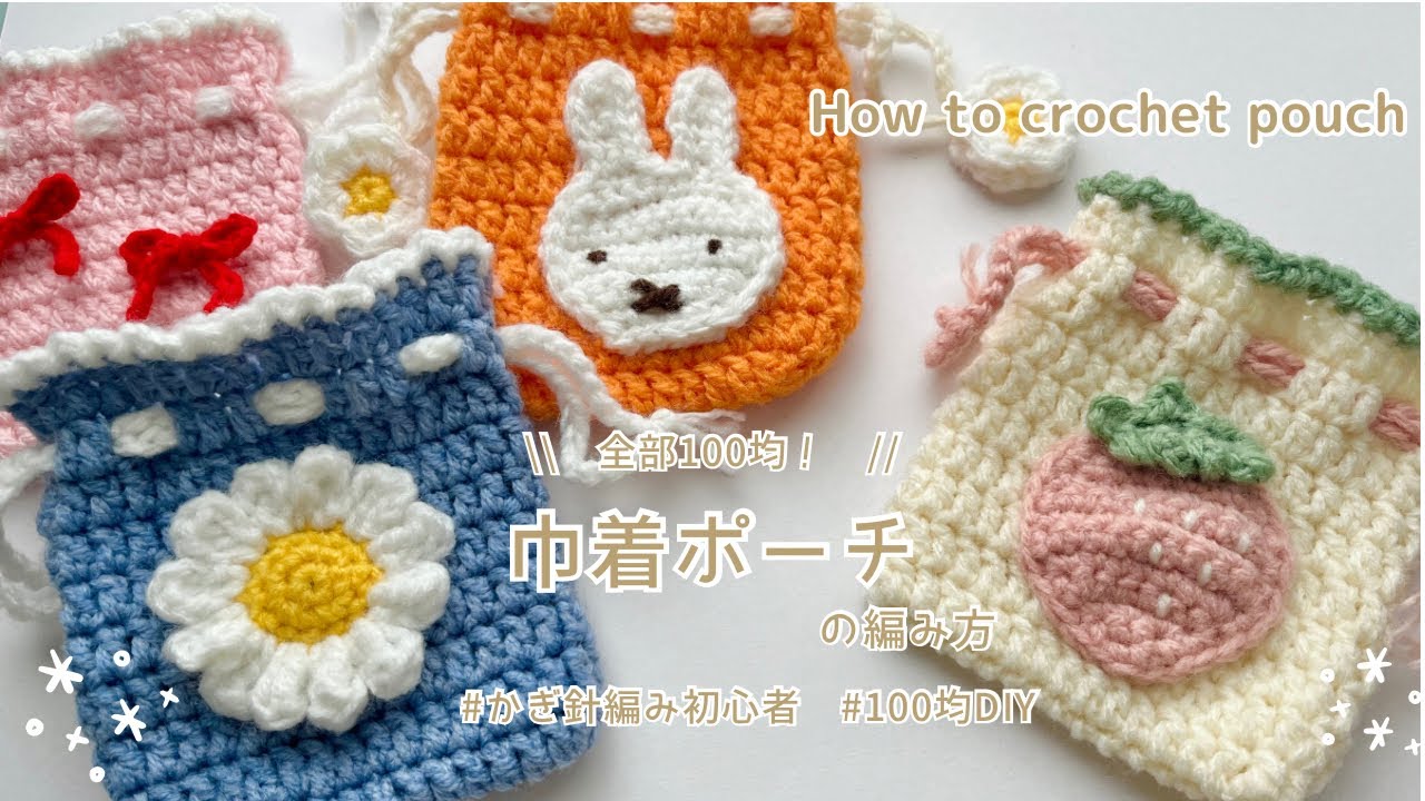 かぎ針編み 巾着ポーチの編み方👛100均材料だけで作る可愛い毛糸のポーチ🎀✨。