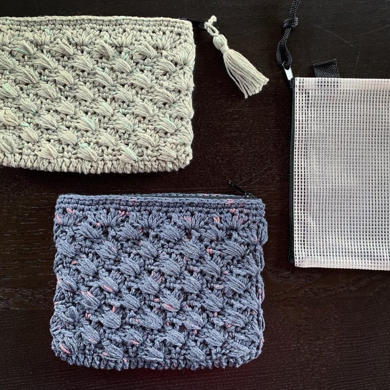 レイヤーシェル模様の縫わないファスナーポーチ -編み図データのみ-mayuminose。