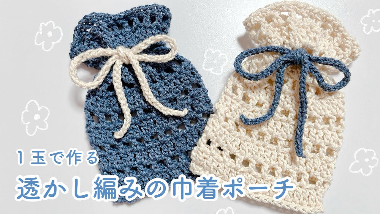 かぎ編み 基本の巾着ポーチ初心者の方もすぐ編めるHow to crochet pouchcrochet for beginnertutorial。