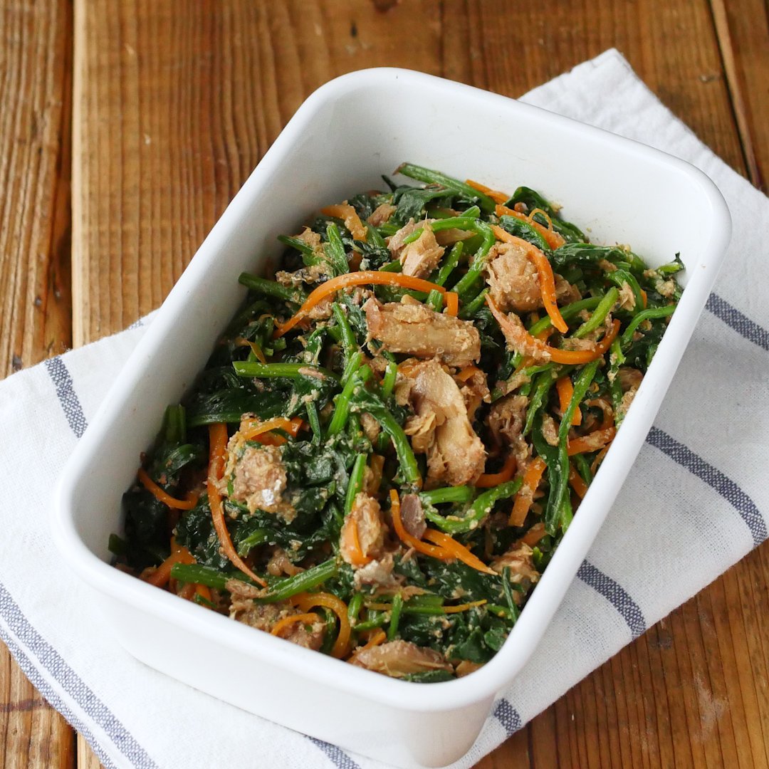 さば缶と小松菜のサラダ。