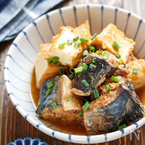 作り置きにも。鯖缶と厚揚げのピリ辛炒め煮。