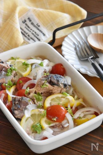 洋食の前菜にも♪ サバ缶と新玉ねぎのレモンマリネ。