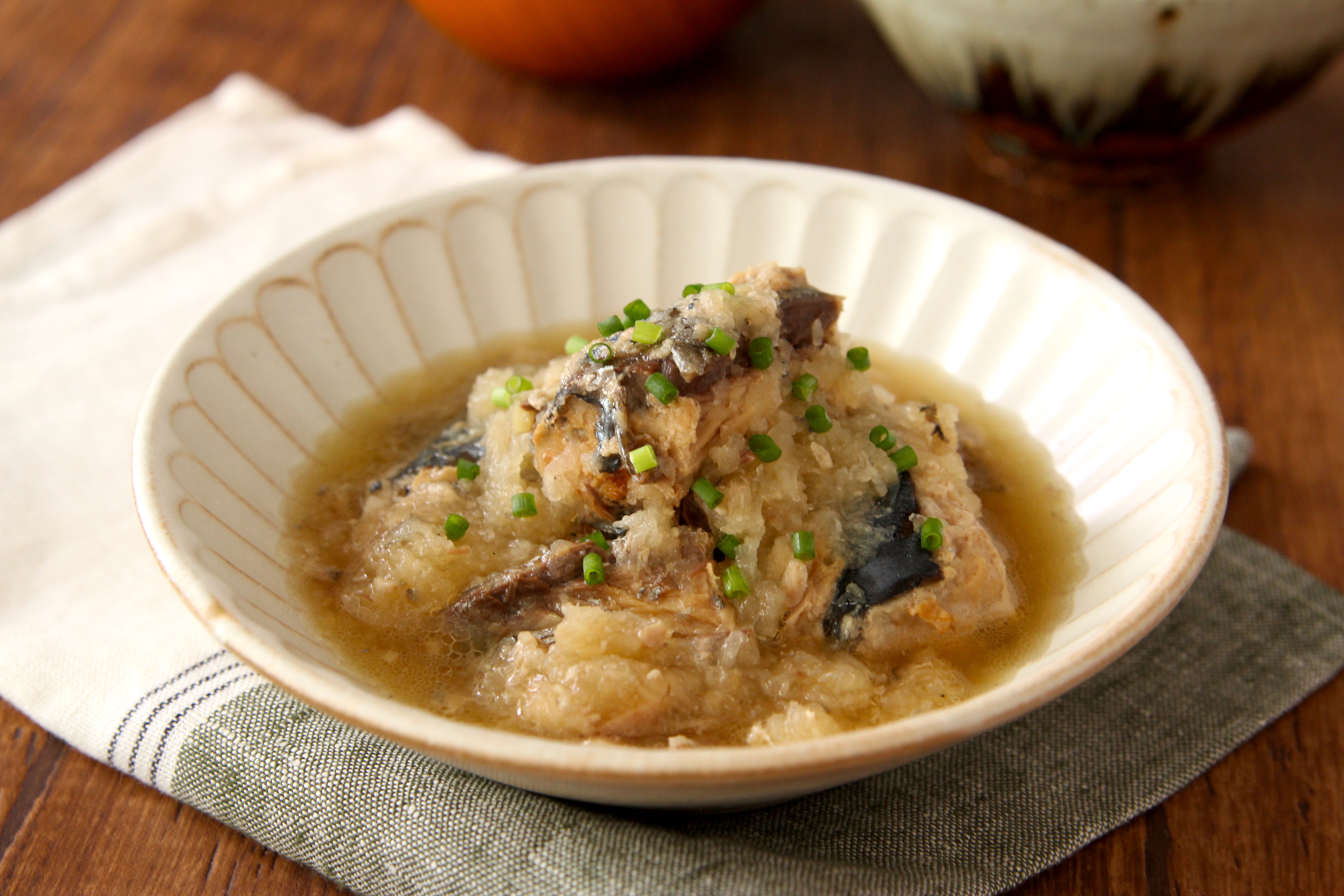 5分で簡単! レンジでサバ缶のおろし煮ラクつく管理栄養士考案の作り置きレシピサイト。