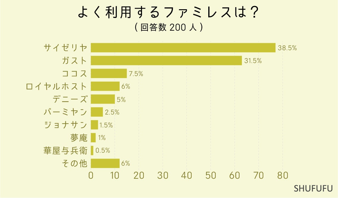 アンケート調査 よく行くファミレスのランキング1位はどこ?昼間の時間利用が最多!株式会社しんげんのプレスリリース。