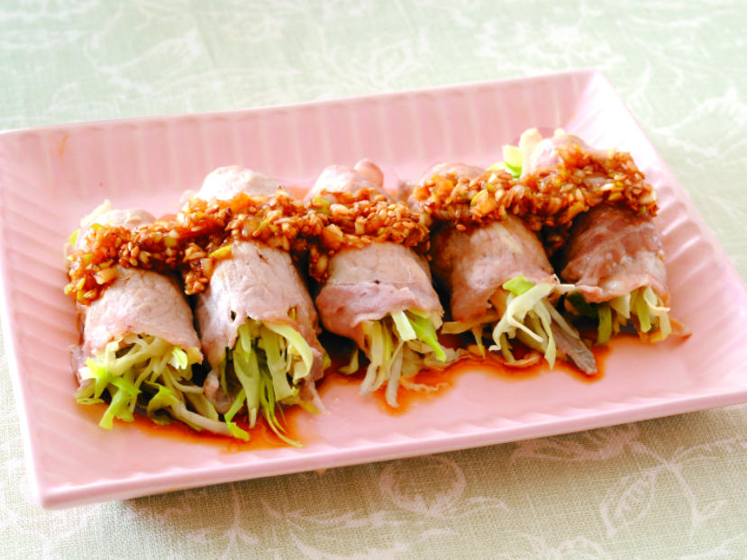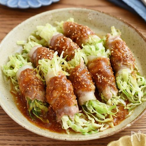 食べ応え抜群! 千切りキャベツ肉巻き。