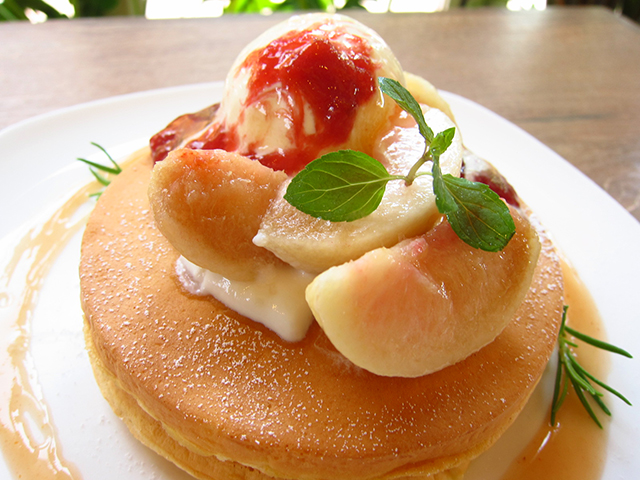 来週の火曜から桃のパンケーキ新潟市中央区のカフェ「フェルマータ」。