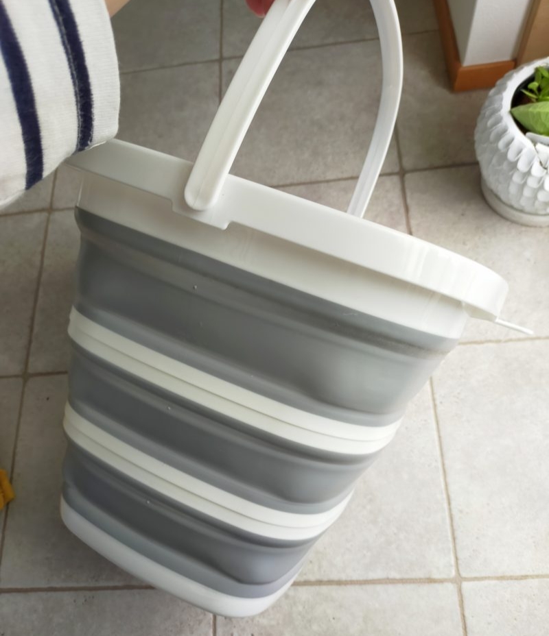 100均 セリアの折りたたみバケツが便利ジャグの水受けに使えてコンパクト収納 – ろんキャン。