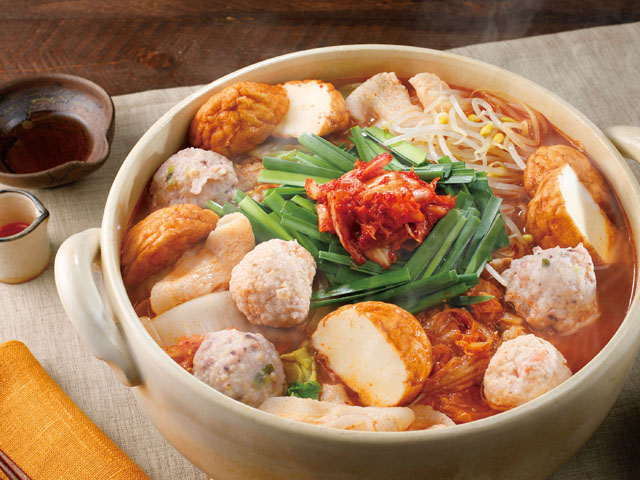 コクがあっておいしい!海鮮団子のキムチ鍋のレシピ つみれ・だんご おいしいおすすめ料理レシピ 紀文食品。