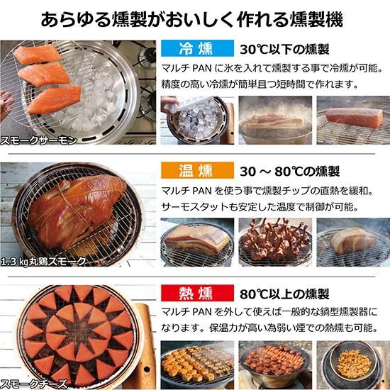 楽天市場 燻製器 スモーカー 日本製 送料無料18-0ステンレス製 マルチオーブン 33cm業務用 家庭用 冷燻法 温燻法 熱燻法 くんせいジューシー ローストビーフ チャーシュー スペアリブ 生ベーコン スモークドハム ベーコン ナッツ類 調理道具 調理器具 お掃除簡単。